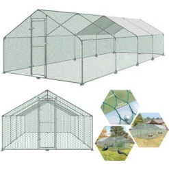 Enclos Pour Poulailler 6m² En Acier Galvanisé, Toit Imperméable Et Anti UV, Porte Avec Loquet 6 M²