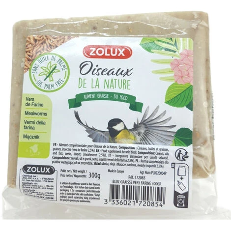 Bloc de graisse vers de farine . bloc de 300 gr. pour oiseaux de la nature.