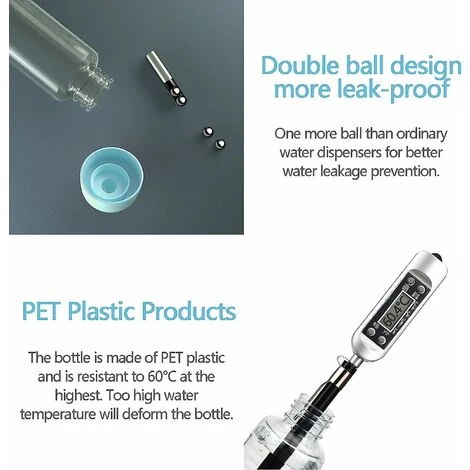 4.【no drip Design】This bottle design with stainless steel ball, only pet touches the ball can it drink the water, don’t worry about water leakage. (Note: To prevent water leakage, please do not fill up the water bottle.)