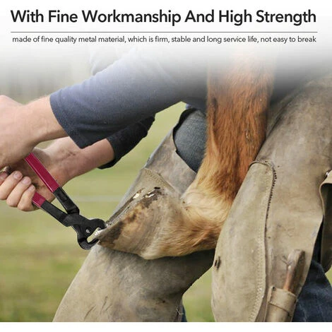 Il s’agit d’une sorte de pince à sabot pour cheval de qualité supérieure, fabriquée dans un matériau métallique de qualité supérieure, qui présente une durée de vie ferme, stable et longue, difficile à rompre. Équipé de différents outils fonctionnels, il prend en charge la manucure et le nettoyage complets des fers à cheval. Principalement utilisé pour manucurer les ongles de cheval, nettoyer les fers à cheval.
