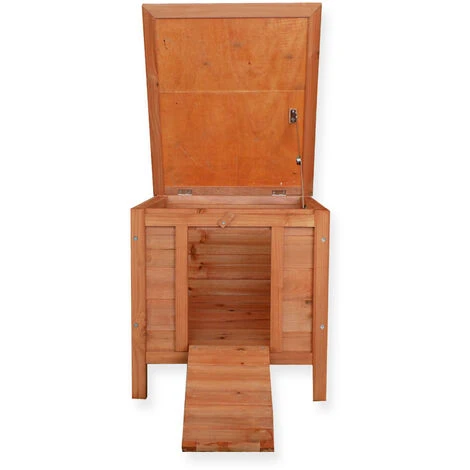Pour que l’endroit de couchage soit facilement accessible, le clapier est équipé d’une petite porte qui représente en même temps la rampe d’accès. Si la maisonnette doit rester inaccessible aux animaux de la ferme, vous pouvez relever la rampe et la fermer dûment. Très pratique, le toit du clapier s’ouvre pour faciliter les travaux de nettoyage et d’entretien. Cette fonction facilite l’accès vers l’intérieur. Pour une bonne protection en cas de pluie, le toit en bois est doté d’une isolation en bitume.