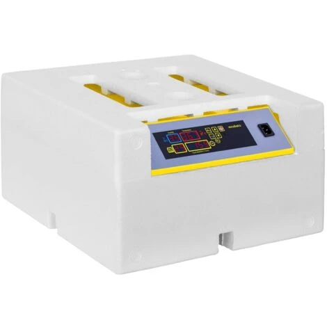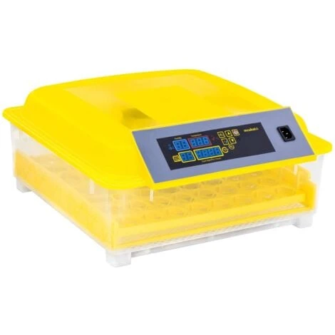 Couveuse à œufs – 48 œufs – Mire-œuf et flacon inclus – Entièrement automatiqueLa couveuse d’Incubato est idéale pour quiconque souhaite faire éclore des œufs de canard, d’oie ou de caille. En effet, l’appareil automatique IN-48DDI convient parfaitement à cette tâche demandant une grande constance. Comme il permet de faire éclore jusqu’à 48 œufs de volatile en même temps, il est tout indiqué pour l’utilisation commerciale. Il est doté d’un afficheur LED qui vous renseigne sur plusieurs aspects importants : la température, l’hygrométrie, le jour d’incubation et le moment où les œufs doivent être retournés. Vous souhaitez atteindre un taux d’éclosion satisfaisant ? Alors cette couveuse à œufs est tout indiquée !Attention : Avant de mettre la couveuse en service, n’oubliez pas de la remplir d’assez d’eau pour que le taux d’humidité soit adéquat. Avant d’utiliser l’appareil, renseignez-vous bien sur le processus d’incubation des œufs.Que l’incubation commence ! Faire éclore des œufs est une expérience fascinante qui requiert de la constance, une bonne planification, de la flexibilité et un sens de l’observation aiguisé. La livraison comprend un mire-œuf et un flacon vide. Grâce à lui, vous pouvez surveiller le développement des poussins en illuminant les œufs pour voir se dessiner les contours des embryons au travers de la coquille. Ainsi, vous savez toujours où en est le développement des poussins. L’appareil est par ailleurs doté d’un couvercle transparent pour que vous soyez témoin de l’éclosion dès qu’elle se produit ! Afin de garantir une température intérieure homogène, la couveuse est pourvue d’un ventilateur intégré. Celui-ci assure une meilleure circulation d’air et diffuse uniformément la chaleur. L’appareil d’incubation est capable d’accueillir 48 œufs de taille standard, ou encore 24 œufs de dinde ou de canard à la fois. Comme il faut compter jusqu’à 35 jours selon le type d’œufs à faire éclore, il est essentiel de choisir le bon appareil dès le départ et de limiter la consommation d’électricité. En optant pour l’incubateur IN-48DDI, vous avez la certitude de faire des économies ! En effet, son moteur ne consomme que 80 watts d’énergie, il ne risque donc pas de vous ruiner.La couveuse IN-48DDI : légère et compacte Cet appareil qui simule la couvaison se distingue par sa légèreté et sa forme compacte. Pesant environ 3,1 kg, il se transporte sans grand effort et se stocke tout aussi aisément. De plus, il est doté d’un couvercle et de supports à œufs amovibles, ce qui rend le nettoyage très facile. La température est cruciale pour le processus d’incubation, c’est pourquoi l’appareil comporte un panneau de commande numérique à afficheur convivial, qui permet de régler la température au degré près, sur une plage de 20 °C à 50 °C. Une fois que la température adéquate est sélectionnée, le tour est joué : le système de commande SMART prend la relève et chauffe la couveuse comme vous le souhaitez. En outre, le mécanisme de retournement automatique penche les œufs de 45 degrés vers la gauche durant 10 secondes toutes les deux heures.Simple et sécuritaire à utiliser La couveuse est équipée d’un panneau de commande numérique convivial. Par son intermédiaire, il est possible de gérer de nombreux paramètres, comme l’hygrométrie et la température interne de la machine. Le panneau comporte un afficheur LED dont vous pouvez vous servir pour consulter la durée d’incubation écoulée et la fréquence de retournement des oeufs. Il vous donne également accès aux réglages des différentes alarmes (température et humidité trop hautes/basses) et des températures seuil. Étant donné que l’intérieur de l’appareil est en contact permanent avec l’eau durant l’incubation, une attention particulière a été accordée à la sécurité lors de la conception. Ainsi, la couveuse a été mise au point de sorte qu’elle réponde aux critères rattachés à l’indice de protection IPX4.