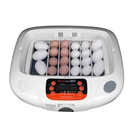 Couveuse automatique avec capacité pour 20 œufs de poule, 12 œufs de canard, 6 œufs d’oie, 30 œufs de perdrix ou 40 œufs de caille.