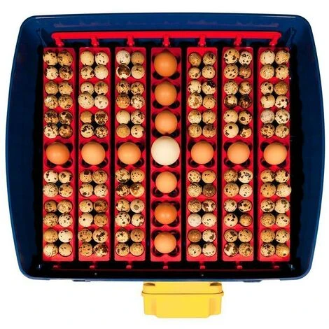 Incubateur permettant de placer verticalement tout type d’œuf : de l’oie à la caille, dans chaque logement il est possible d’insérer : 1 œuf de poule (ou d’espèces de plus grosses dimensions) ou bien 4 œufs de petites dimensions, jusqu’à un total de 196 œufs de caille. La couveuse peut couver les œufs de poule, faisan, pintade, caille, perdreaux, perdrix, canard, colvert, oie, dinde, paon, bartavelle, pigeon, colin, oiseaux exotiques et rapaces. Le ravitaillement en eau se fait par l’extérieur évitant ainsi d’ouvrir le couvercle et de modifier considérablement l’humidité. La ventilation est assurée par une turbine (Ø 100 mm) silencieuse, qui aspire de l’air par le bas pour ensuite la diriger sur les parois latérales en créant une barrière d’air chaud. La couveuse possède un contrôleur électronique sophistiqué de la température, qui permet de maintenir la température constante, avec une précision de 0,1°C. Plage température modifiable à partir d’un Min de 30°C à un Max de 40°C Pendant toute la phase d’incubation, la couveuse REAL 49 tourne les œufs automatiquement. Les œufs sont inclinés de droite à gauche (et vice-versa). Le cycle complet dure 1 heure. La couveuse possède 2 grands hublots sur le couvercle de l’incubateur, permettant ainsi une parfaite visibilité des œufs. La couveuse est fabriquée en Italie et est garantie 2 ans. Températures, humidités en fonction des espèces: