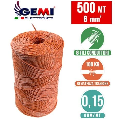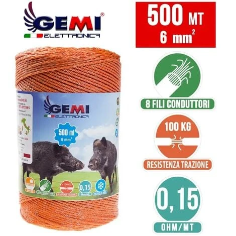 Gemi Elettronica FIL DE CLÔTURE ÉLECTRIQUE clôture électrifiée 500 MT 6 mm²