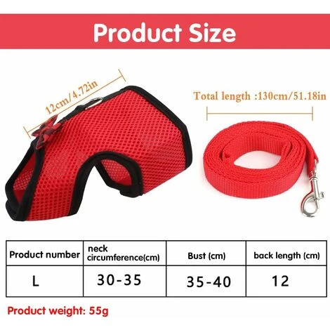 à des activités pour éviter la perte d’animaux qui s’enfuient. [Réglable taille]Les fermetures au cou et au ventre du harnais sont réglables, qui servent à adjuster la taille et à empêcher l’animal de s’étrangler ou de s’enfuir. Les petits animaux de différentes tailles peuvent porter cette ensemble de harnais et
