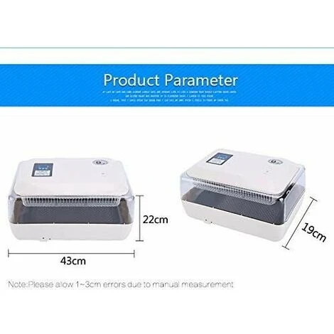 Matriau premium: Ce Incubateur Automatique 24 ufs est fabriqu en PVC+PP durable, sain et sr, cette couveuse est idale pour les petites sries, avec un contrle lectronique, elle est trs conomique l’usage.