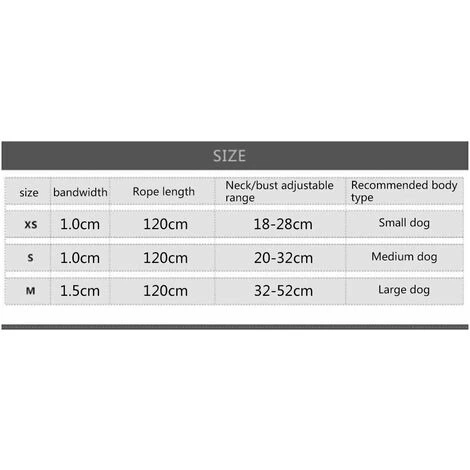 La taille S est adaptée pour un tour de poitrine de 32 à 38 cm, le poids est inférieur à 2 à 4 kg.