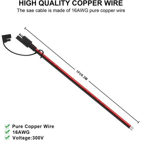 Le câble SAE est composé de fil de cuivre pur 16 AWG ; Longueur du câble : 0,3 m/1 pied. épais, flexible et durable.