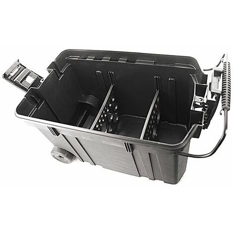 Malle de voyage avec roues, compartiments internes et couvercle avec plateau de rangement et poignée de traction extractible. Crochets pratiques pour le verrouillage avec un cadenas (non inclus).