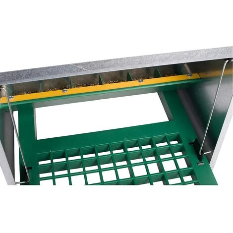 La conception robuste en acier galvanisé et en plastique de ces mangeoires est de grande qualité. La mangeoire protège, en effet, le grain des rayons UV, de la moisissure, de la pluie et des saletés (fumier…). Les rongeurs (rats et souris) et les oiseaux ne peuvent accéder à la nourriture et la consommer. Le système intègre également des séparateurs et un bord anti-gaspillage afin d’éviter les pertes.