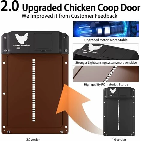 【 Yoarmyt Dernière Porte Automatique de Poulet】nous avons la rétroaction des clients sur le marché, l’amélioration: mettre à jour le système moteur intégré pour rendre les performances plus stables et plus fiables; La sensibilité du capteur optique amélioré