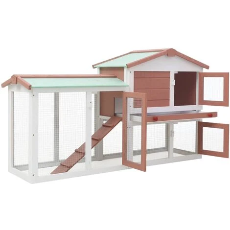 Donnez à vos amis à fourrure un espace de vie confortable avec notre clapier en bois ! Ce clapier sur 2 niveaux offre un grand endroit confortable pour garder les petits animaux, en particulier les lapins. Il présente de multiples utilisations : jouer, faire de l’exercice, s’entraîner ou simplement garder vos animaux de compagnie en toute sécurité. Il est construit en bois de sapin peint solide qui est durable et sans danger pour les animaux. Un toit en asphalte garde vos amis à fourrure à l’abri des intempéries extérieures. La perche surélevée garde vos petits animaux en sécurité, au sec et au chaud, surtout les jours de pluie. Votre animal de compagnie peut facilement entrer dans la zone de logement surélevée par la rampe. Conçu pour un entretien simple, il contient un plateau amovible pour un nettoyage facile. L’espace extérieur avec un câblage de clôture durable assure une ventilation suffisante et garde les animaux de compagnie à l intérieur et les prédateurs à l’extérieur. Les portes verrouillables protègent vos animaux de compagnie et vous permettent de les faire rentrer et sortir facilement. Le clapier est facile à assembler avec tout le matériel nécessaire inclus. Remarque importante : Nous vous recommandons de placer la cage à lapins sous abri. En conséquence, elle durera plus longtemps.