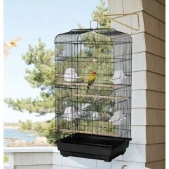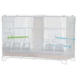 BATHRINS®Grande Volière Pour Oiseaux Cage à Roulettes Avec 4 Mangeoires Acier Inoxydable