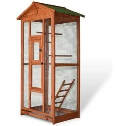 Volière D’oiseaux En Bois Avec Perchoirs Cage Oiseaux Bac à Crottes Cage D’animaux Élevage