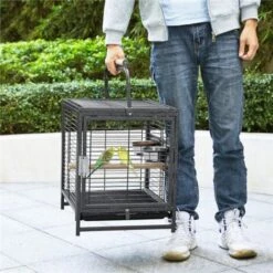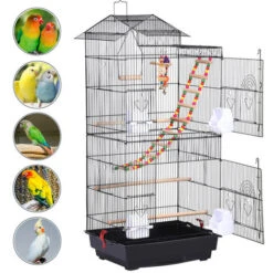 Yaheetech Cage à Oiseaux Avec Jouets Poignée Cage Pour Petit Oiseau Noir 48,5 X 47,5 X 39cm