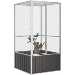 Cage à Oiseaux Volière Anthracite 111x107x211,5 Cm Acier Galvanisé 97635