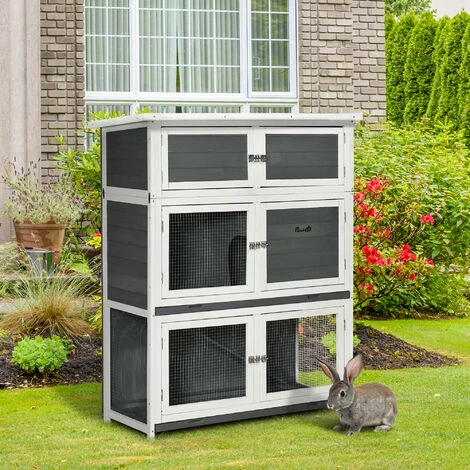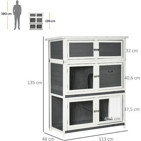 – Clapier pour lapin sur pied 2 niveaux bicolore gris blanc très élégant + 1 étage pour le rangement