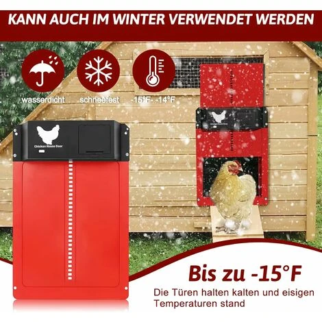 ÉTANCHE ET DURABLE : La porte automatique du poulailler est fabriquée en ABS et en aluminium, Sûre et fiable, étanche IPX4, Résistante à la chaleur et au froid. En effet, la batterie se trouve dans un boîtier étanche, il est parfaitement adapté à l’intérieur et à l’extérieur.