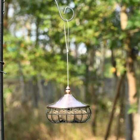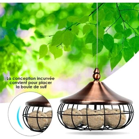 - ★COUVERCLE PRATIQUE ★Pour insérer les boules de graisse, Il suffit de dévisser le bouton rotatif pour ouvrir le couvercle. Le couvercle rond métallique pratique empêche d’autres animaux de voler de la nourriture, protège les aliments de l’humidité ou de la pourriture rapide en évitant que les aliments ne soient trempés par l’eau de pluie.
