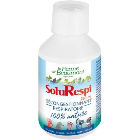 Pour volailles, pigeons, dindons, faisans, paons. Aliment complémentaire liquide formulé pour libérer les voies respiratoires des animaux.