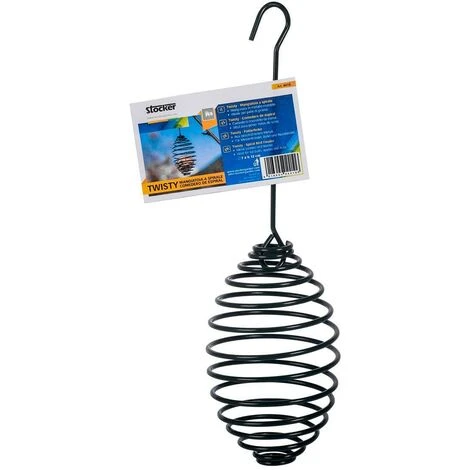 La mangiatoia a spirale Twisty è realizzata in metallo rivestito ed è ideale per palle di grasso, mele o noci. È perfetta da appendere in giardino, in terrazzo o sul balcone. – Misure: diam 7 cm x h 12 cm