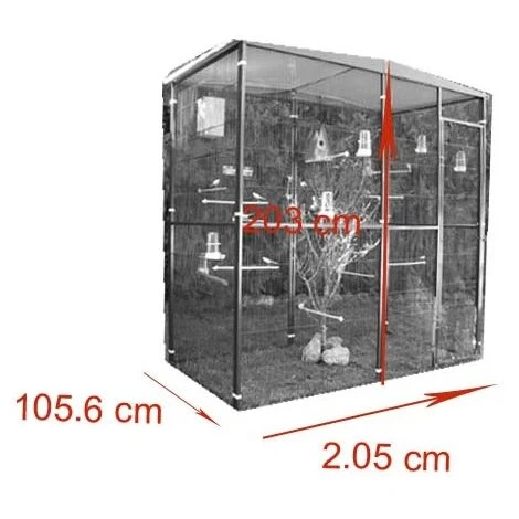 Avec une hauteur de 195 cm (203 cm au faitage de toit), cette volière nous permettra d’entrer debout à l’intérieur de celle-ci.